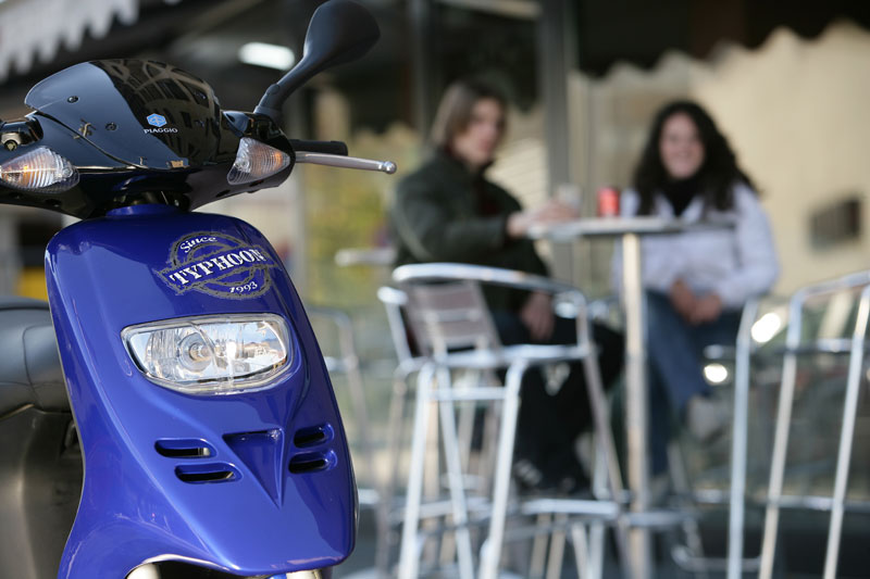Компания Piaggio представила новый Typhoon 50 по очень соблазнительной цене – всего 1400 евро или 1850 долларов США. Новинка интересна внешне и показывает прекрасные результаты по динамике и скорости, благодаря обновленному двигателю. Двигатель теперь четырехтактный, четырехклапанный, объемом 49 см3. Охлаждение – воздушное. Также новинка оборудована 14 дюймовыми колесами и большим баком. Новый двигатель способен раскрутиться до 9500 оборотов, выдавая при этом 4,5 л.с. мощности. Максимальный крутящий момент достигается при 8000 оборотах. При этом максимальная скорость составляет скромный по итальянским меркам 65 км/ч.